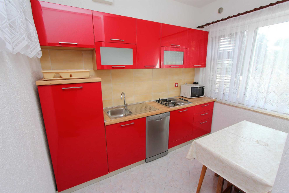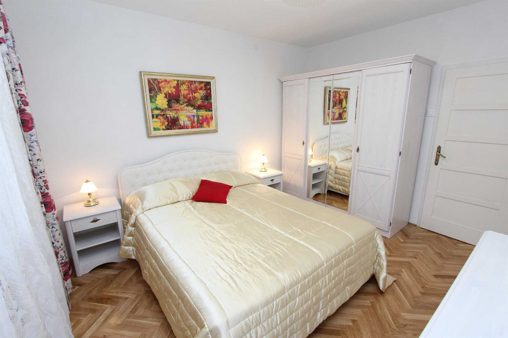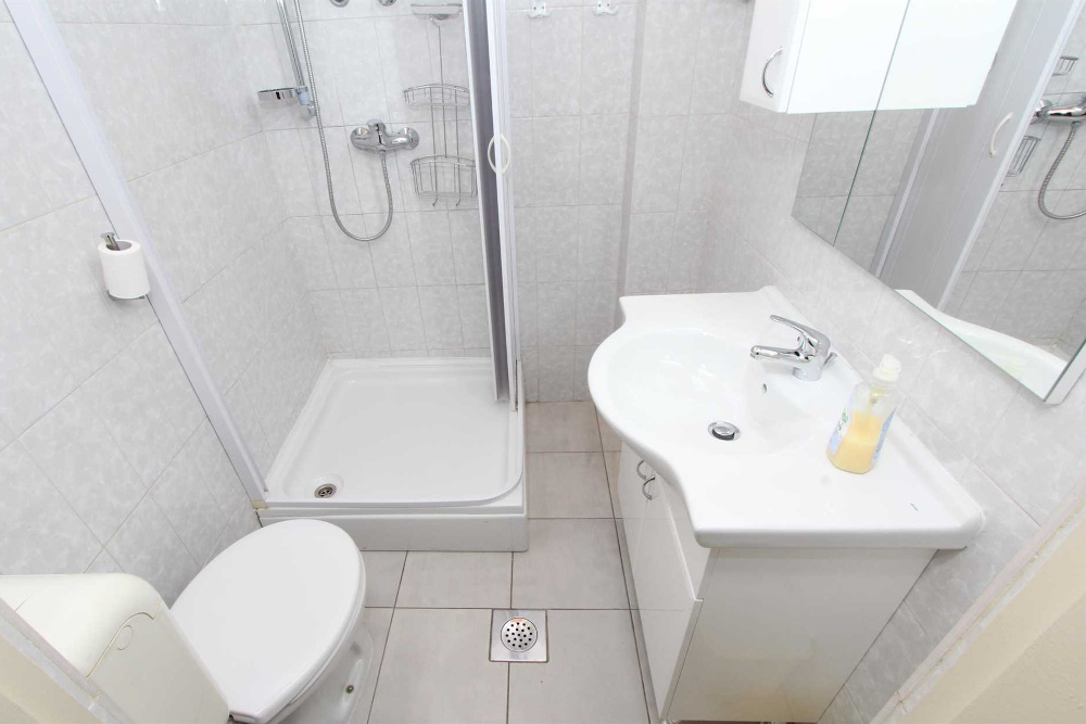 ein Doppelzimmer, Wohnzimmer mit Sitz/Liegecouch, Kochecke mit E-Herd, Kuehlschrank, LCD-TV (Satelite), Badezimmer (Dousche, WC, Waschmaschine), Balkon mit Sitzgarnitur und Meerblick. Klimaanlage.